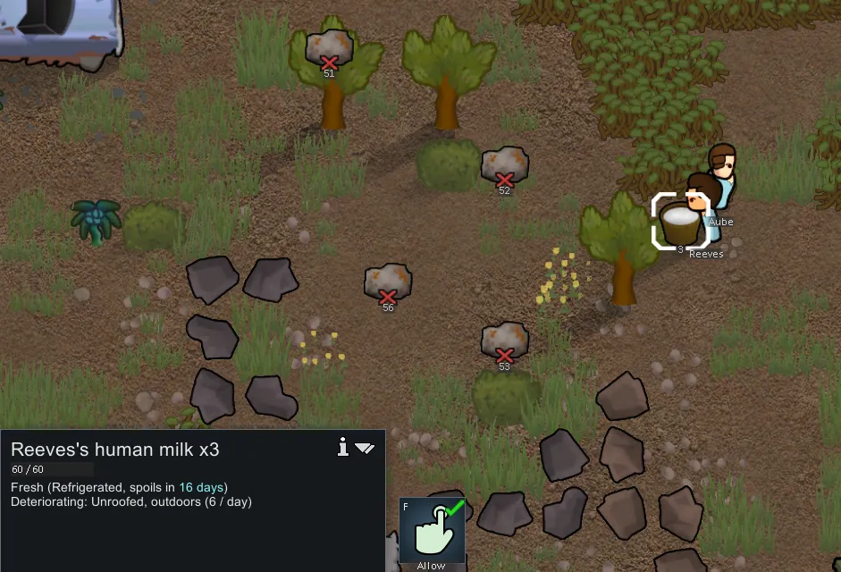 [*] If tagging milk product is enabled, milk from different pawns/races cannot be stacked.