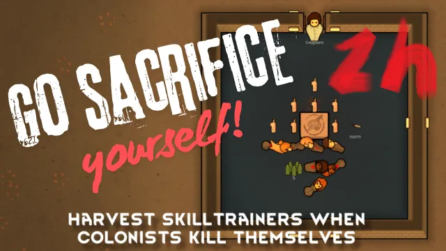 从在新的自我牺牲祭坛上自杀的殖民者身上获取技能训练器。这种黑暗仪式会将被牺牲殖民者的最高等级技能转移给一名技能训练师,使另一名殖民者能够从其痛苦的奉献中获益。