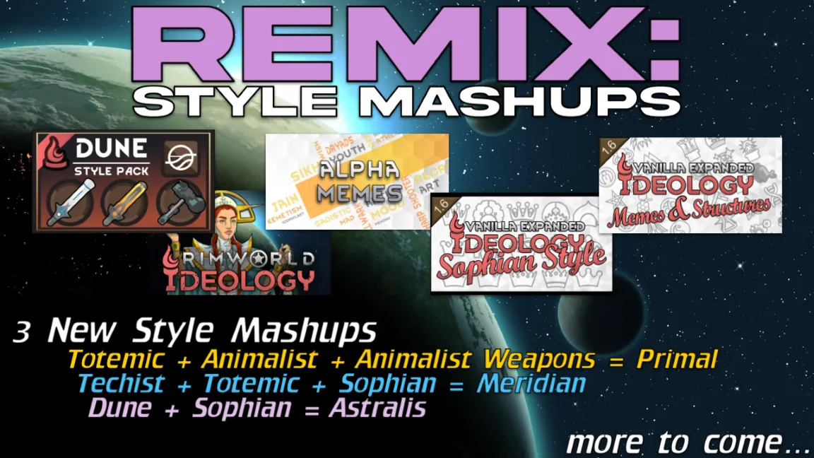 - Only available if [url=https://steamcommunity.com/sharedfiles/filedetails/?id=2993301551]Dune Style Pack[/url], [url=https://steamcommunity.com/sharedfiles/filedetails/?id=3194606539]Sophian Style[/url], and [url=https://steamcommunity.com/sharedfiles/filedetails/?id=2636329500]Vanilla Memes Expanded[/url] are loaded.