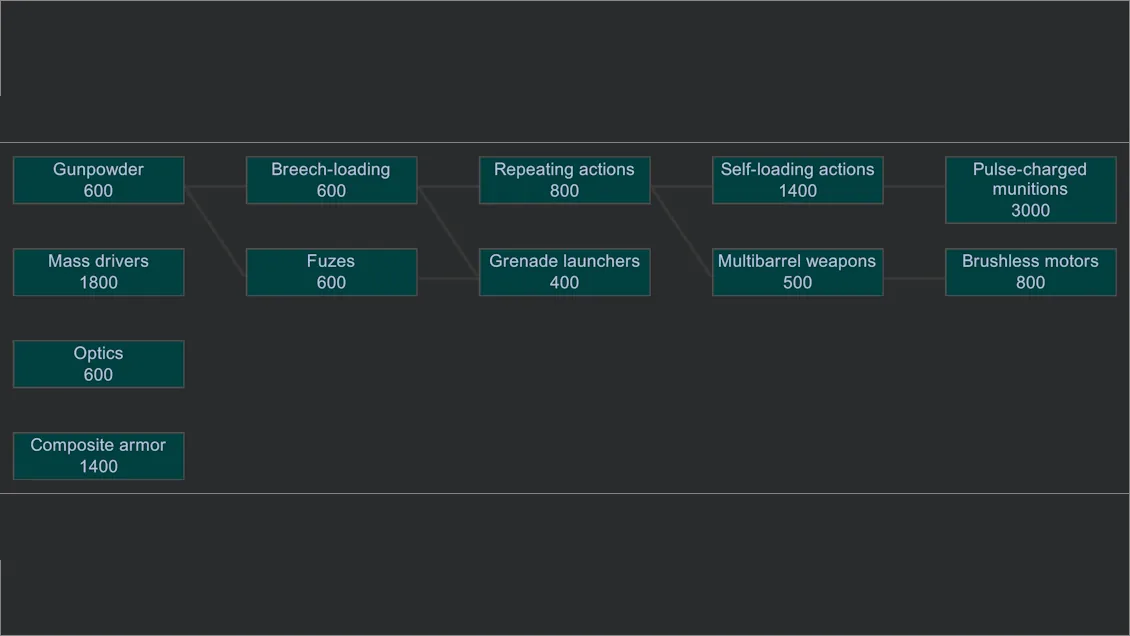 [b]Weapons have been split into 6 primary research topics, with 5 side topics[/b]