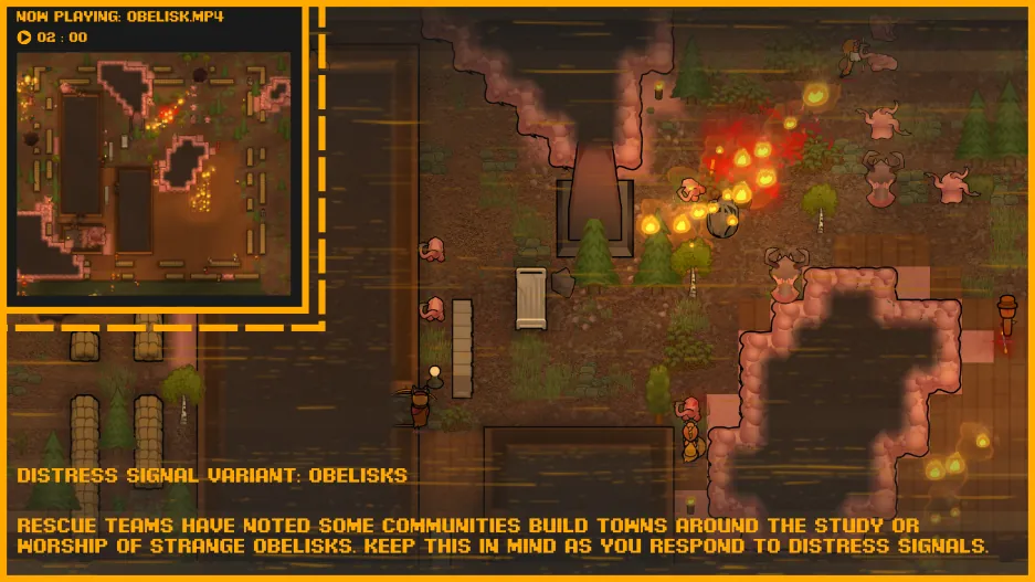 A quest letter will pop up once you arrive notifying you of the threat present, the tech level of the present faction and how its faring, and if an obelisk is present. Fleshbeasts, sightstealers, shamblers, gorehulks, chimera, devourers, and metalhorrors can all spawn as threats. These variants can be turned on and off in the mod's settings! No need to restart, the options take effect instantly!