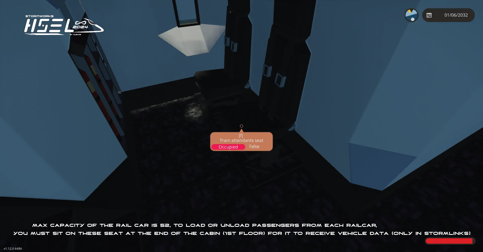 - 2 train attendant's seat (sit here to set car capacity and load or unload passengers of that car + if multiple cars connect you must sit on the seat of those cars the same)