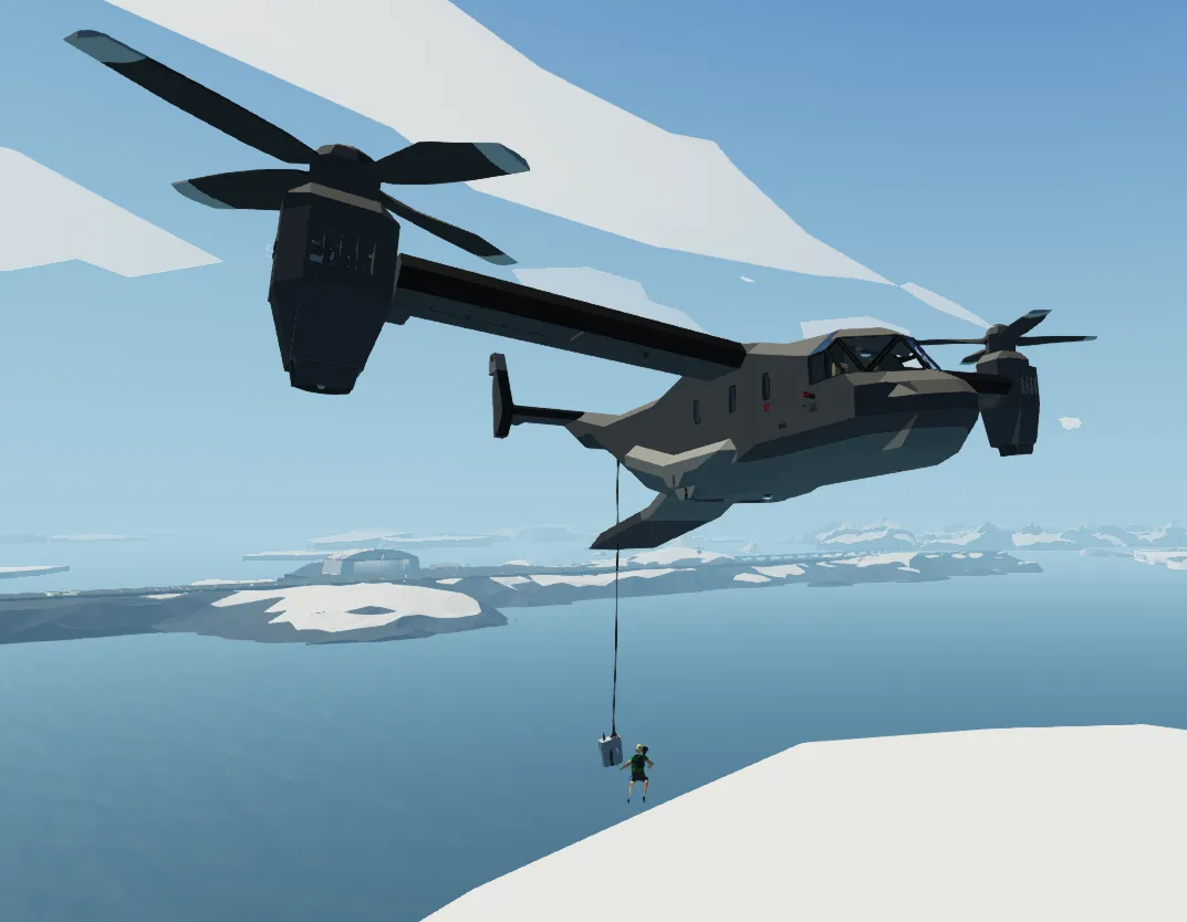 The hummingbird is a cargo and transport VTOL meant for faster missions and large ships. The rappel is used by grabbing the hardpoint connector then grabbing the handle, it starts going down first and then goes up next time you grab the handle. It also has controls inside under the door button. The best cruising throttle is 80ish percent. Also just a note: it starts faster if you hold the down arrow.