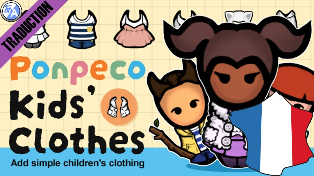 Traduction française du mod : [b] Ponpeco Kids' Clothes [/b] Ce mod ajoute des vêtements simples pour enfants. 14 vêtements (un ensemble haut et bas) 5 vêtements extérieurs
