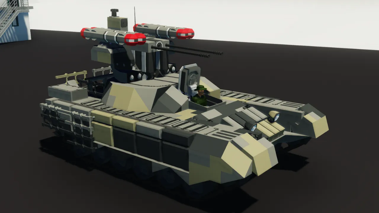 The vehicle is electric because I am bad at making working engines. It uses something for inf power without inf electricity enabled. If anyone knows how to make the turret stop gliding or moving on its own, please tell me. I will update the creation with it fixed and add your name to the credits.