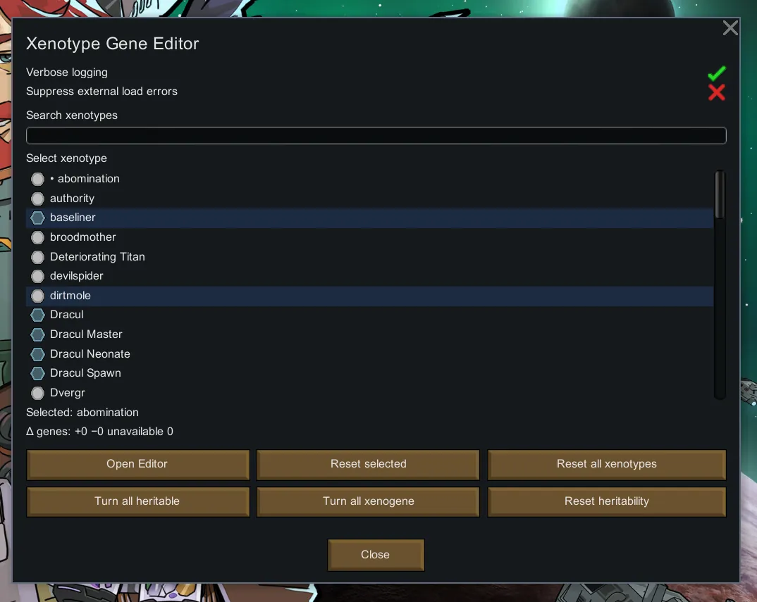 Now includes options to Set all xenotypes to germline or xenogenes.
