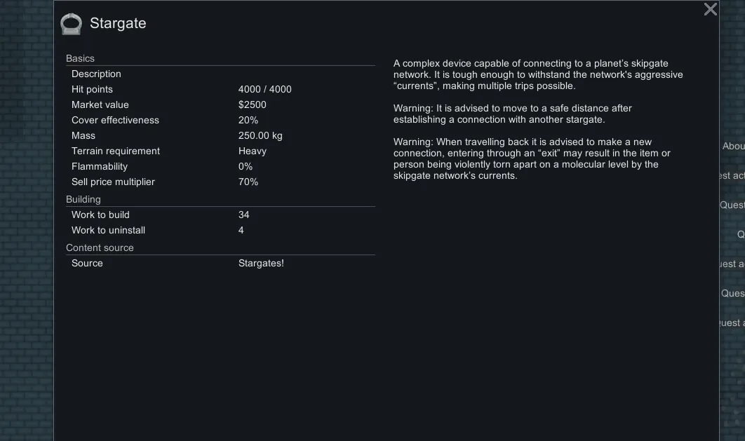 If you're looking for a proper update to the original mod, I've made my own "taste of vanilla" version that replaces pretty much every descriptions to something more akin to vanilla, you can consider it like my personnal update, you'll find it here : [url=https://steamcommunity.com/sharedfiles/filedetails/?id=3405333015] Stargates! to Skipgates! [/url]