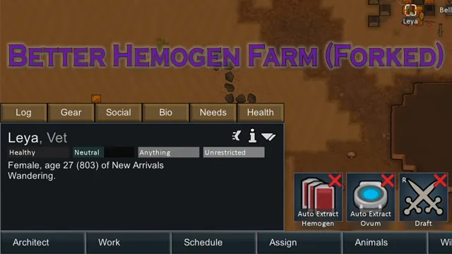 A couple of important notes are that for prisoners the hemogen farm Gizmo is always disabled since the game has native functionality for this as of 1.6 and that ovum farming is disabled by default, but can be easily enabled in the settings menu.