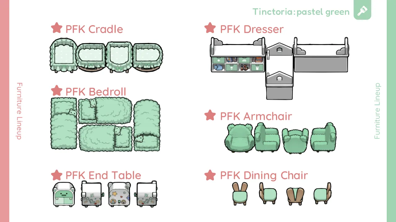 ・This mod includes two types of furniture: some have the same stats as vanilla items, and others are purely decorative with a slight beauty bonus.