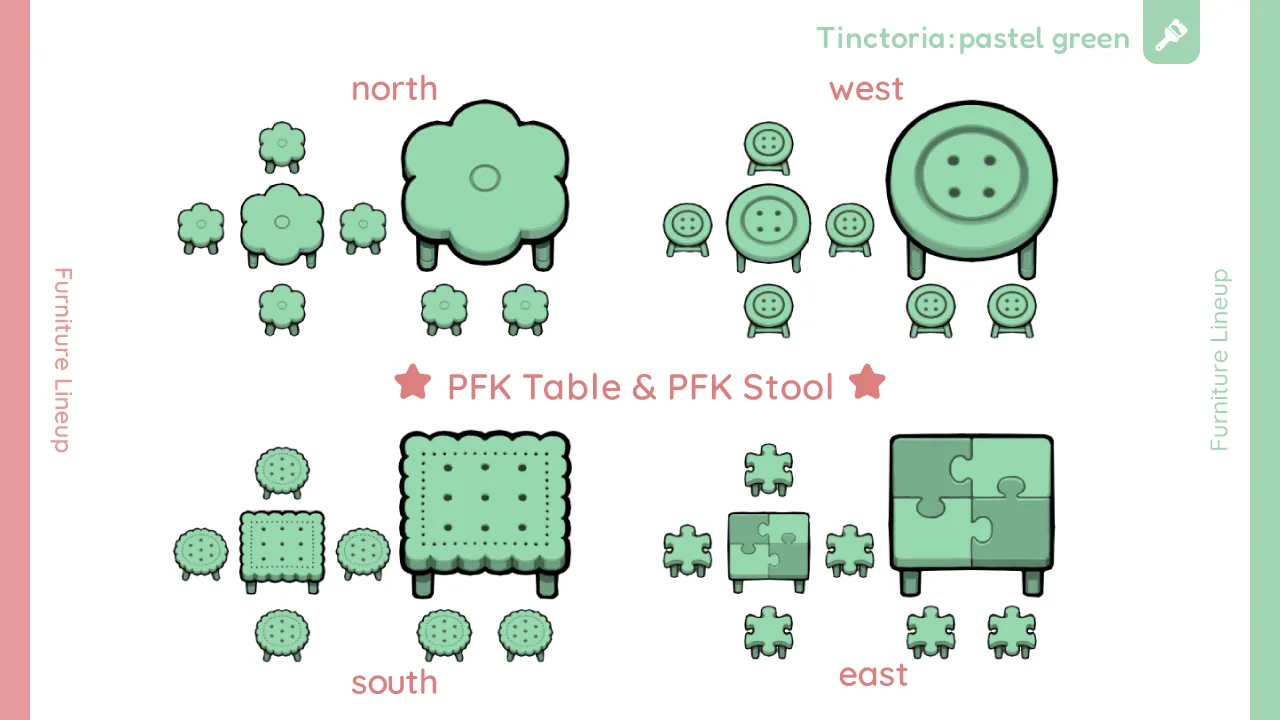 ・ほとんどの家具は東西南北それぞれ異なるグラフィックを用意しています。