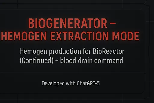 A functional expansion for the amazing [url=https://steamcommunity.com/sharedfiles/filedetails/?id=3307031939]BioReactor (Continued)[/url] that adds **Hemogen extraction**, **functional blood harvesting**, and **moral regret**.