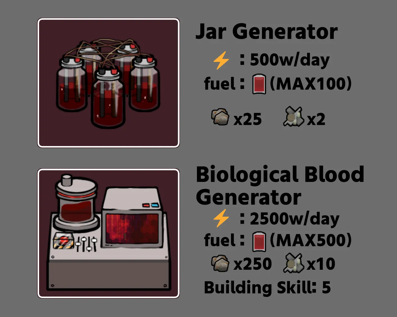 このMODは1x1サイズの500w瓶型発電機と、2x2サイズの2500wバイオロジカル発電機を追加します。
