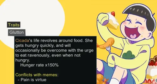Rebrands gourmands to what they actually are, and removes skill gain from the trait (because gorging yourself on food does not automatically mean you know how to cook better).