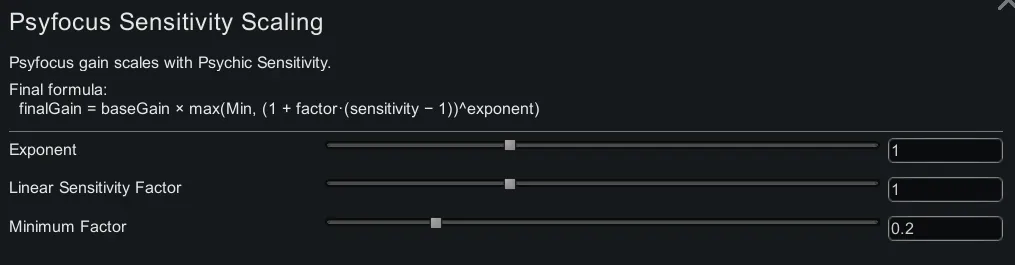 finalGain = baseGain × max(Min, (1 + factor x·(sensitivity − 1))^exponent)