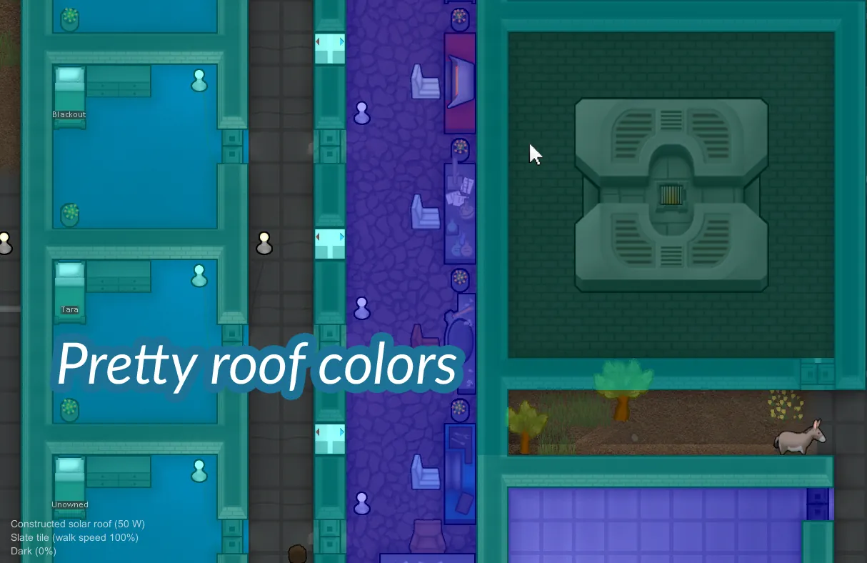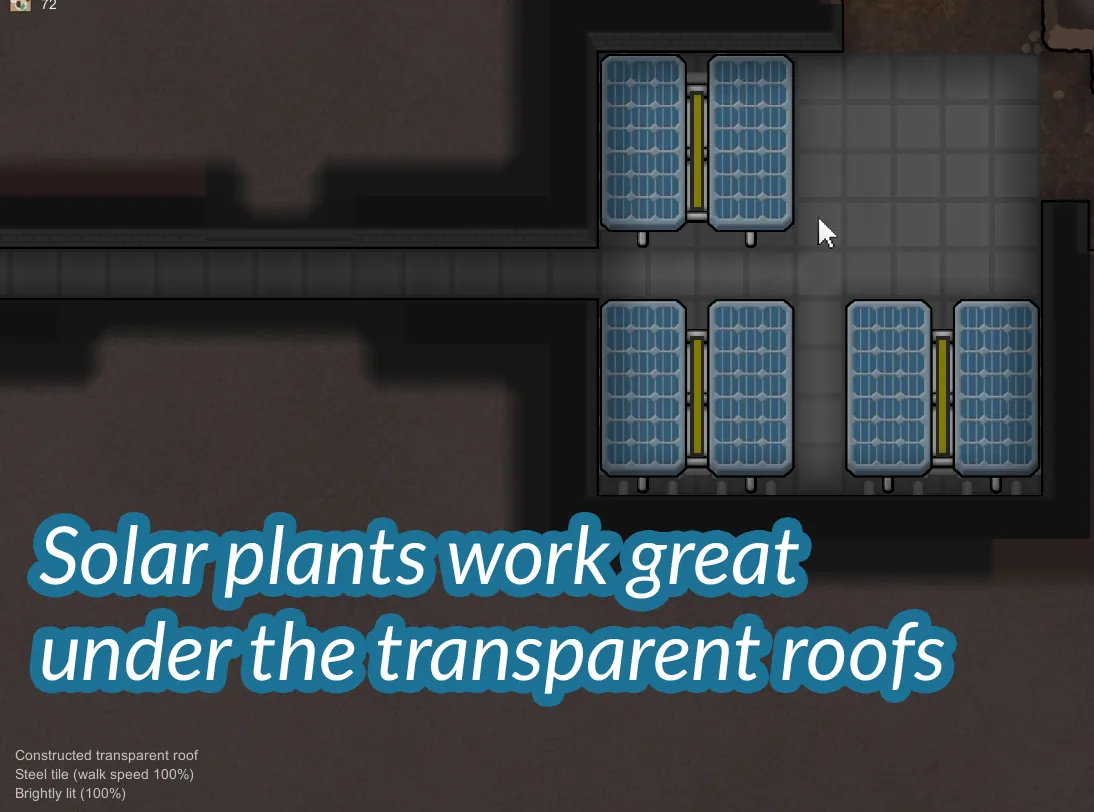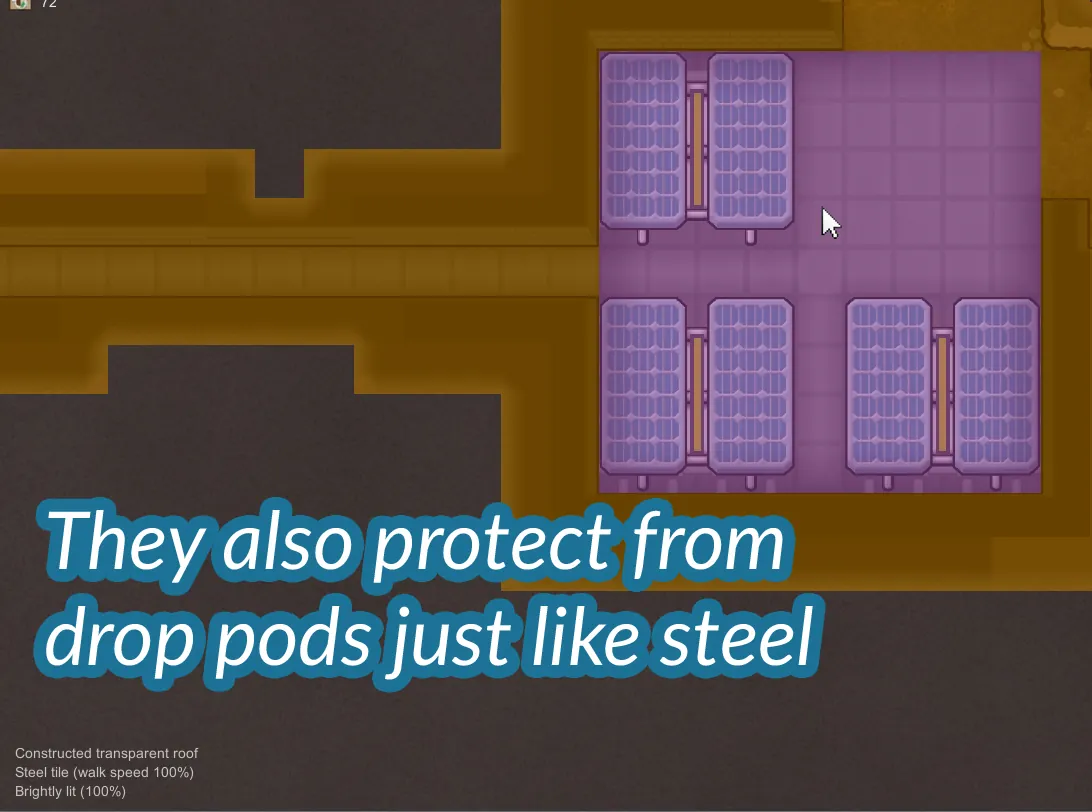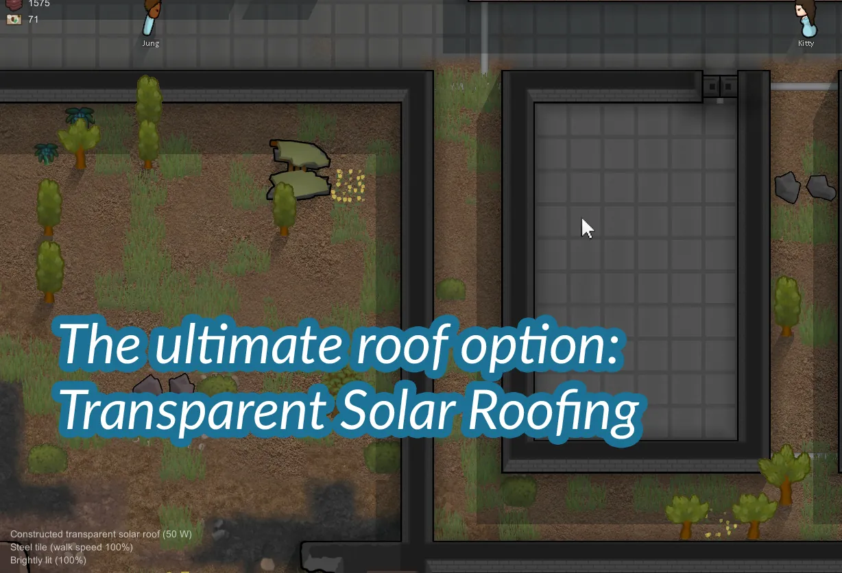Transparent Solar (Requires research of the other roofs, 50 steel, 10 synthread and 1 component and provides 50 watts power)