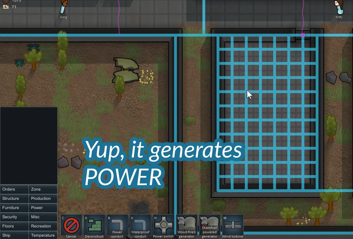 Solar (Requires research, 50 steel and 1 component and provides 50 watts power)