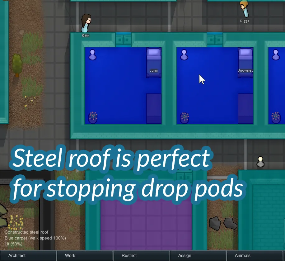 Build a variety of thick roofs for protection against drop pods, mortars and tornadoes.