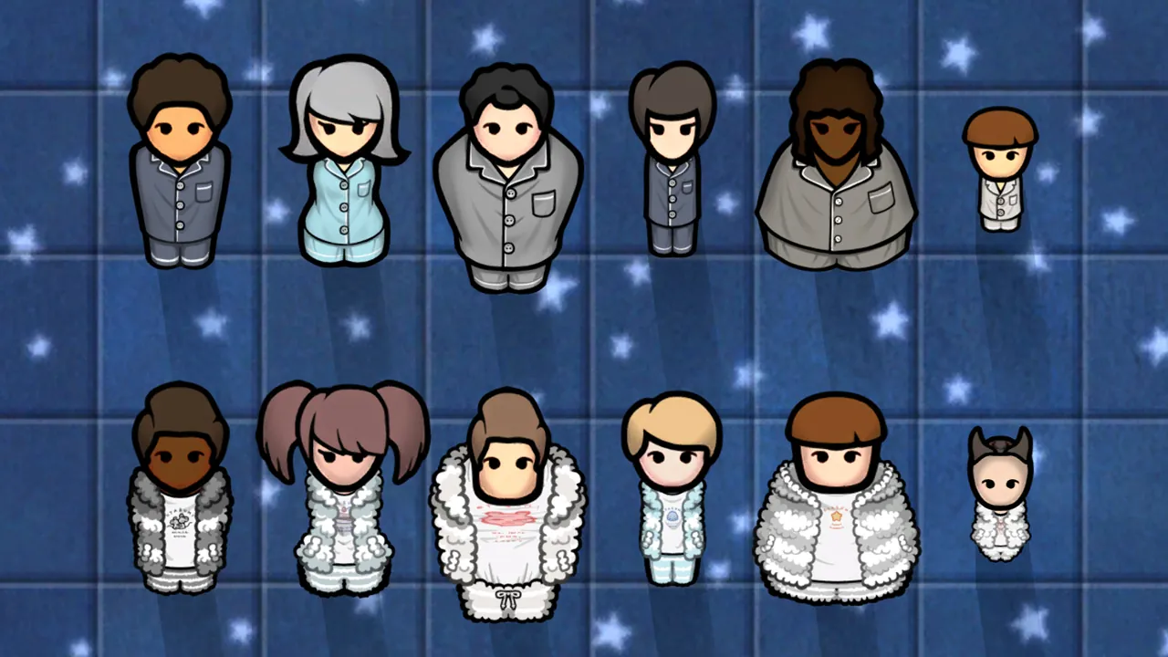 While wearing these pajamas, your colonists will fall asleep faster, rest more deeply, and recover from injuries and illnesses more quickly.