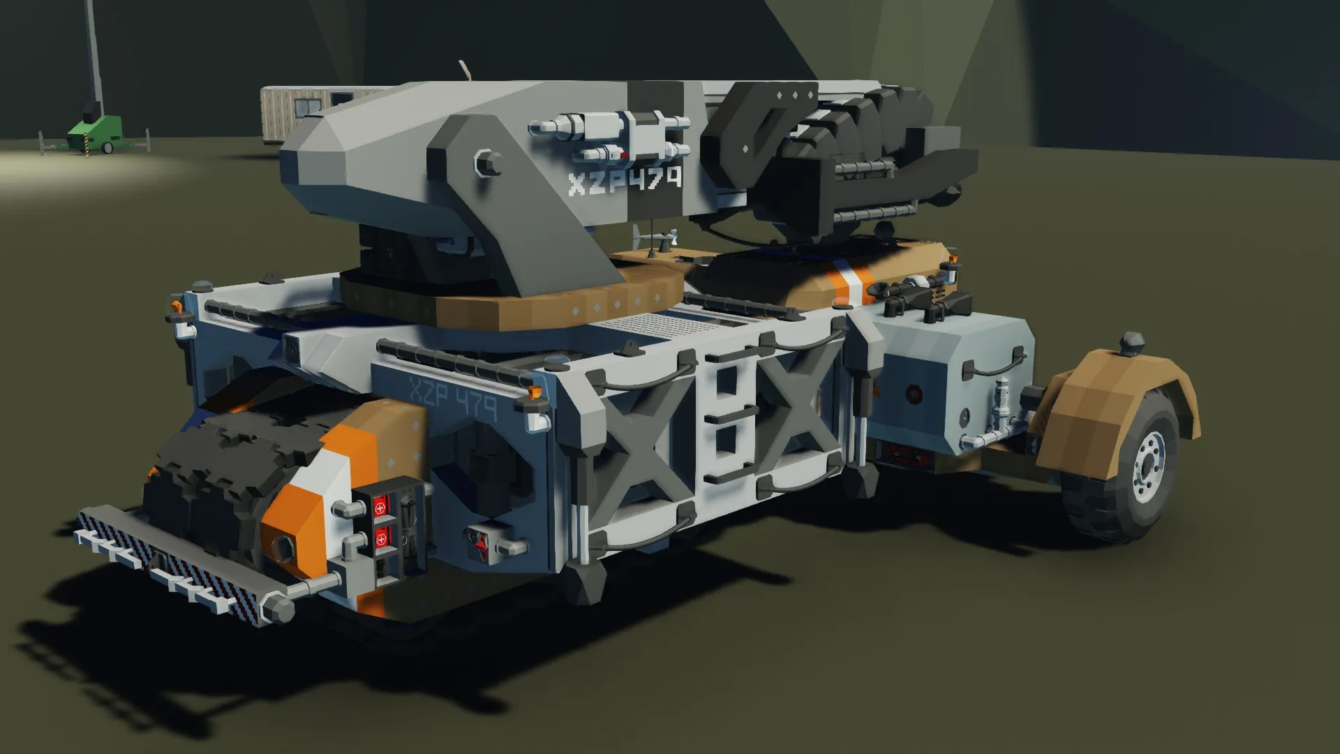 The XZP is a slow and heavy but reliable mining vehicle suited for shorter hauls. Its tripod configuration makes it manouverable for its size with great stability for difficult terrain. With 2 separate storage containers giving the operator control of storage sorting and choice.