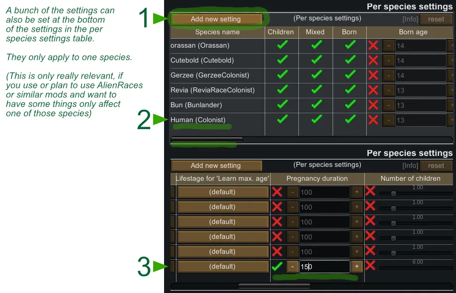 - [i]Children are born after 45 days([b]15 days early-stage (not visible, but chance to vomit)[/b] / 15 days middle-stage / 15 days late-stage) (these are unchanged base-game values! [b]There is now an option to modify this without having to change the base game or mod files[/b])[/i]