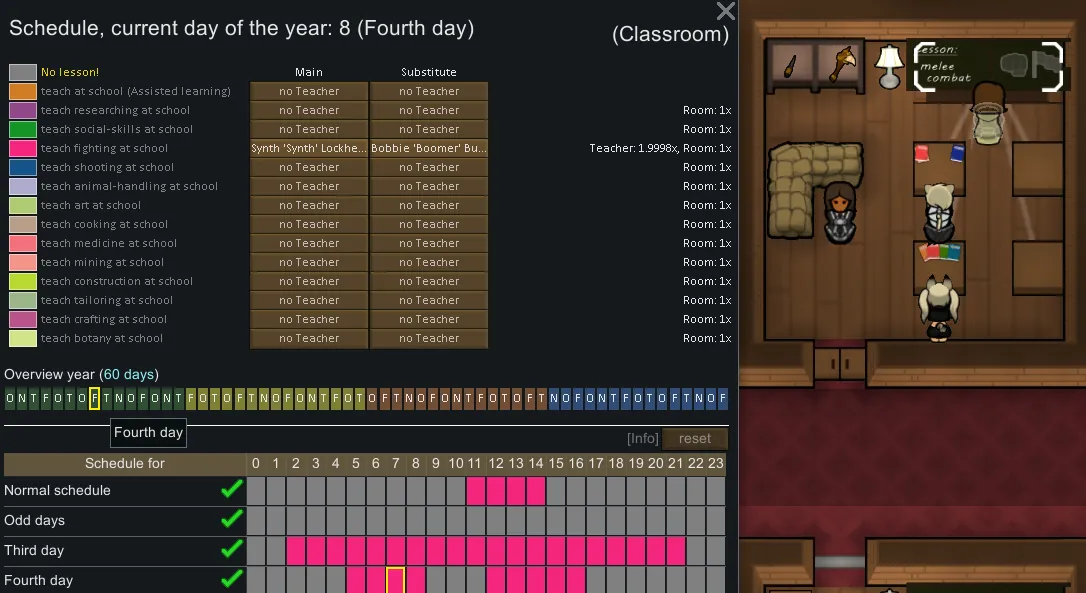 - [i]Teachers should have the intellectual skill at a decent level (3-5 or higher, otherwise they teach less) + a high level in the tought subject (around 7 for most, probably needs balancing)[/i]