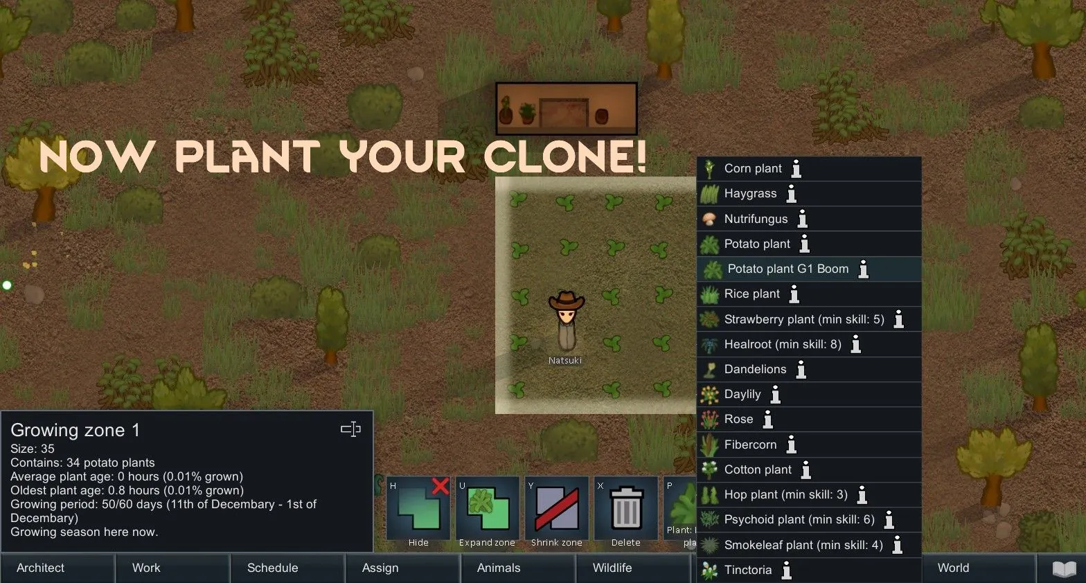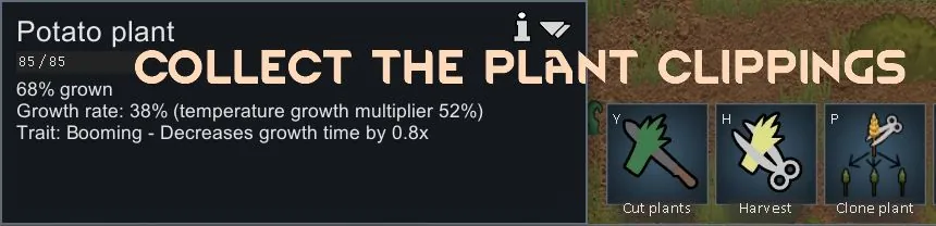 When growing crops or flowerss you will occasionally notice a special trait on a plant (shown in the infopanel, when clicked a plant). This trait is not fully active yet, but you can create some clippings from that plant (if it is at least 50% grown) that will be stored in your potting bench.