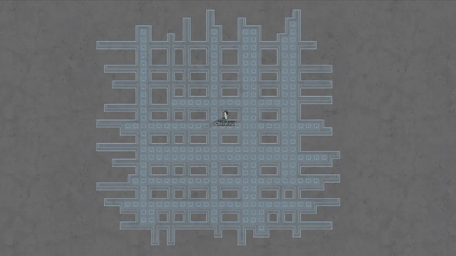 Now even faster, and with much less fps drop! Profiling revealed a 1.5% slowdown at the peak of the second gif (10 builders and ~600 wall segments at max speed), and no impact when not constructing anything. For optimization purposes areas of 50 100 tiles+ are considered open.