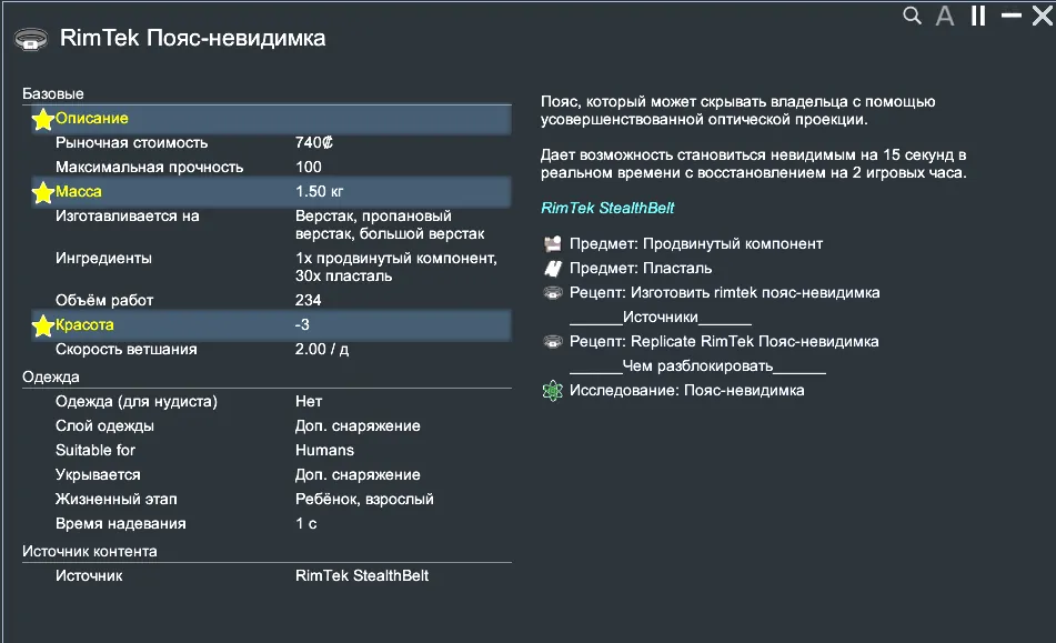 Перевод RimTek StealthBelt - делал для себя. Если кому нужен - велком.
