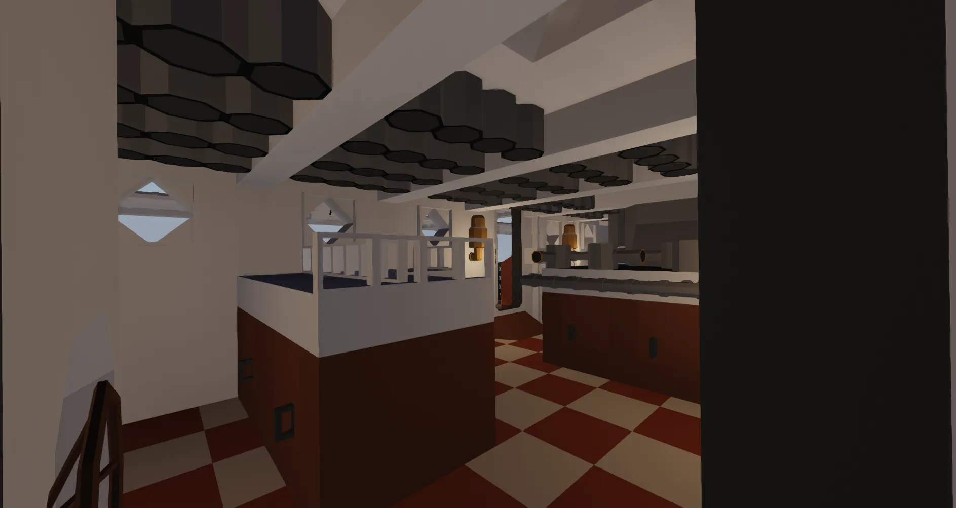 As built, the Oceanic and Atlantic only had 11 boilers (10 for the main engines, and another donkey boiler for deck machinery etc.) However, this was soon realised to be a mistake, thus the Baltic onwards were built with 13 boilers (12 for the engines, and again a donkey boiler). The Oceanic lost 3 of her 4 propeller blades in January of 1872, and went to Belfast in February to both be repaired, as well as have her captain's cabin relocated behind the saloon staircase on the top deck, and also to receive a large iron covering on the bow, known as a turtle-back (or whale-back).