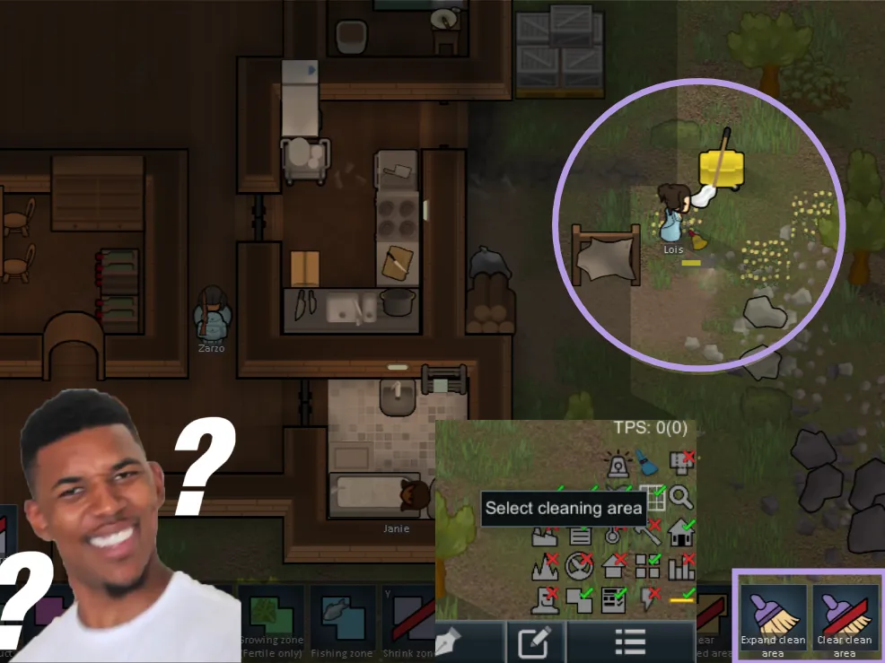 Choose where your colonists clean and never have to watch them sweep the dirt again. Update of the original [b]Cleaning Area[/b] by Hatti, upgraded for the Gravship era.