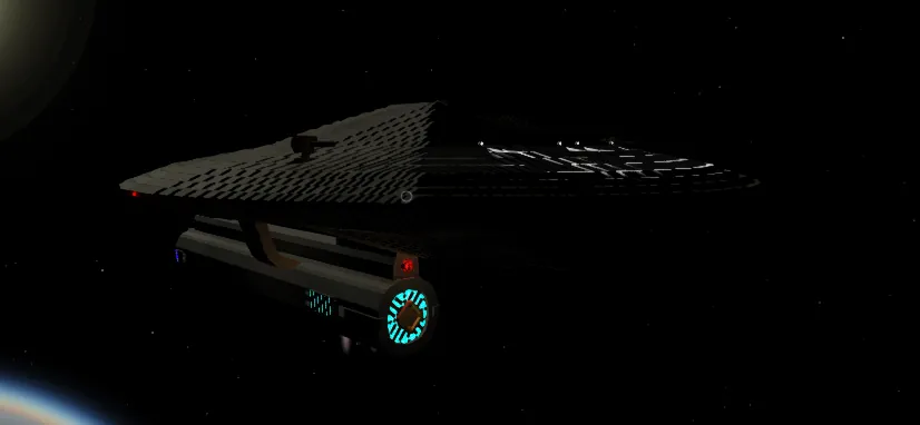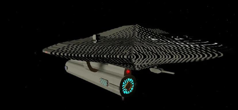The Prototype Type DX-003 is the far superior sucessor of the DX-002 , Since decades of developements in a secret building yard, the DX-003 got some upgrades. Including the first functionnal Ultra-drive MK-I . Unlike his counterpart, the DX-003 is also able to do space-flight. he sucessfully made a earth-moon travel. thanks to his ultra-drive, he can make incredible burst of acceleration in space. despite the exploratory purpose of this ship, he is equiped with a central bottom railgun and 2 side bow battle railgun.