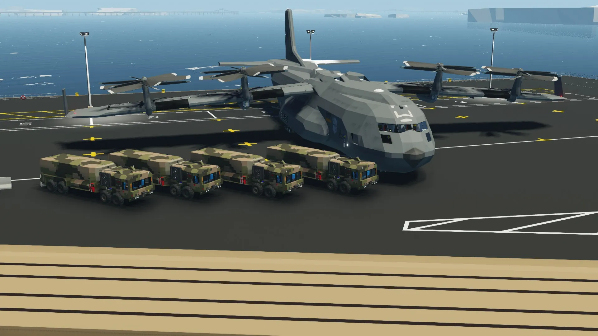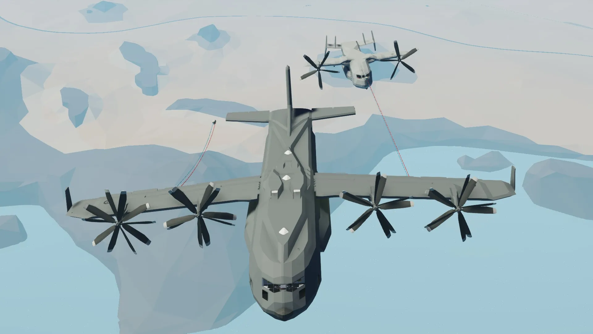 CV-324B "Zeus" is the largest aircraft used by the ODAF. The Zeus can hold up to 8 ISO containers for rapid logistical support. Also equipped with two aerial-refueling pods it can act as a refueling plane for complex multi-vehicle missions.