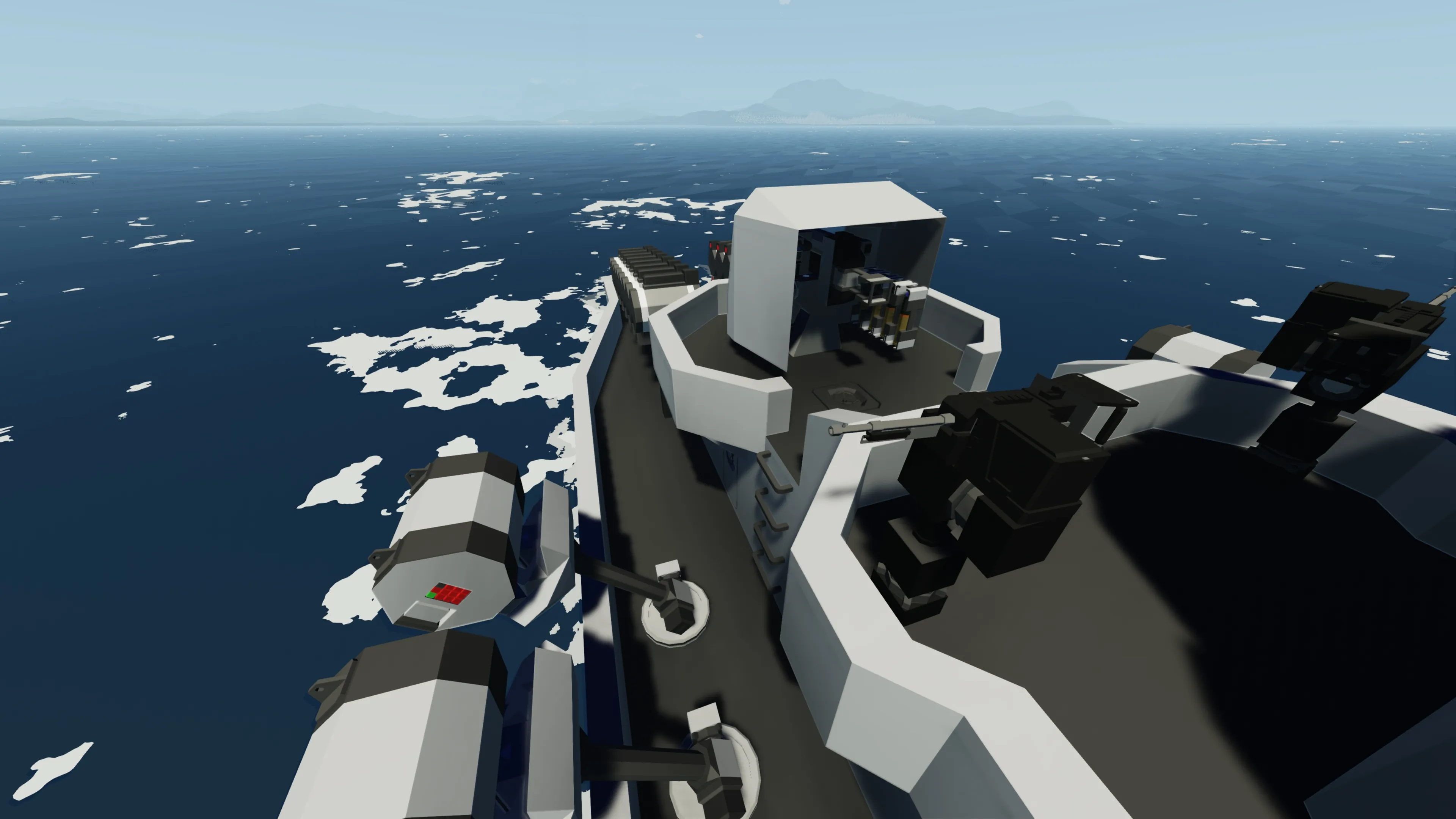 The ship rolls quite a bit to simulate the terrible rolling Flower class vessels had. Hopefully you all will be able to enjoy this with your friends and destroy some PVP submarines. I recommend someone dedicated to driving the boat and looking out on the bridge wings, someone in CIC to work the sonar and radar, and someone on the deck to operate the depth charges and main guns.