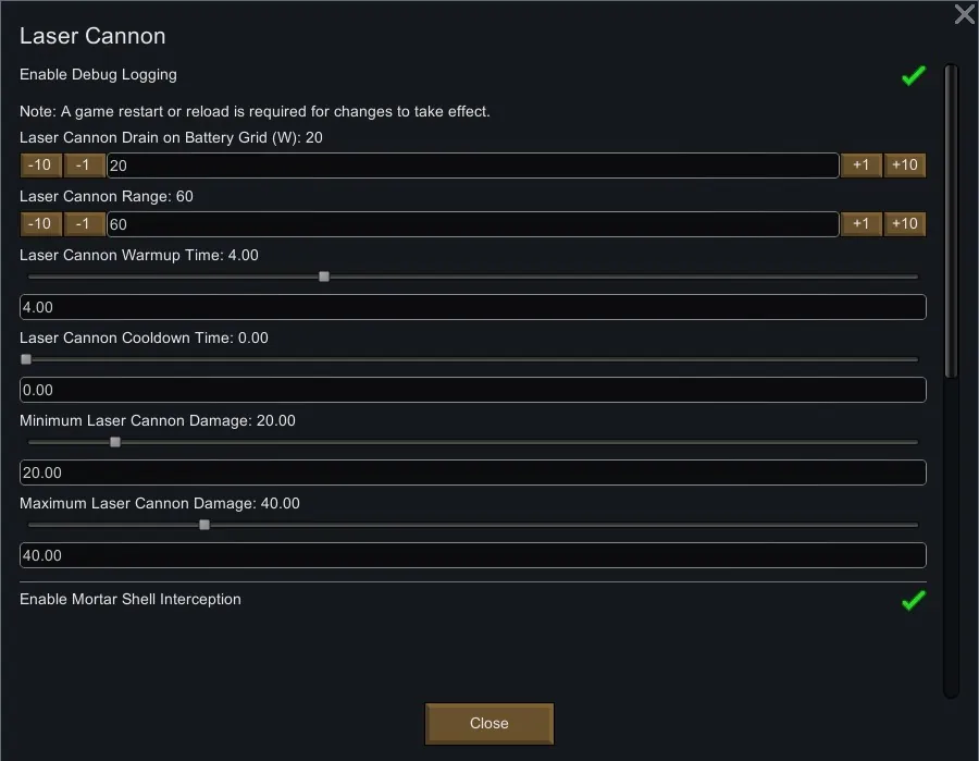 [*] Intercept incoming mortar shells and rockets (also configurable in the mod settings)