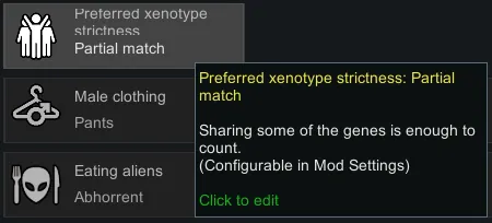Adds "Xenotype Strictness" Precept to adjust how a pawn is determined to be a Preferred Xenotype: