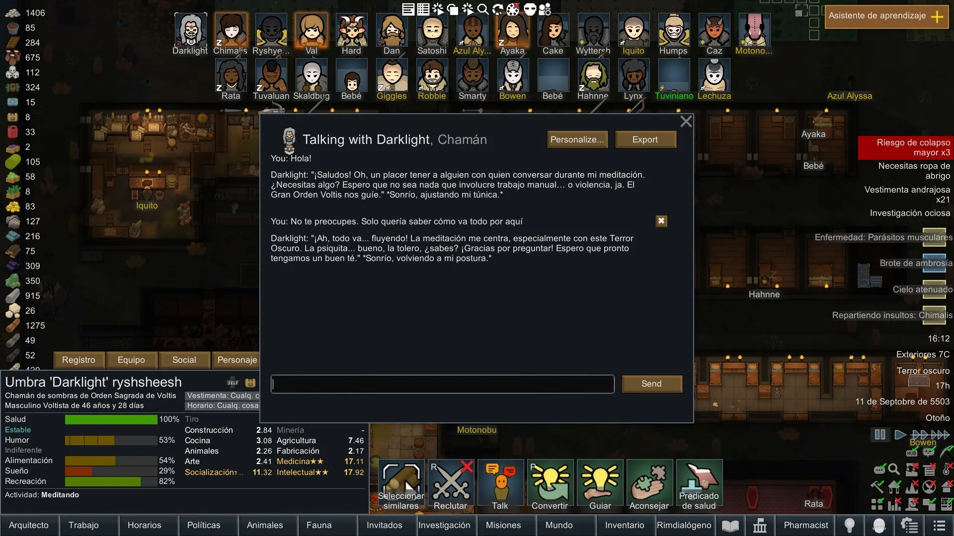 That way, each colonist will have their own personality, which will be reflected in their conversations.