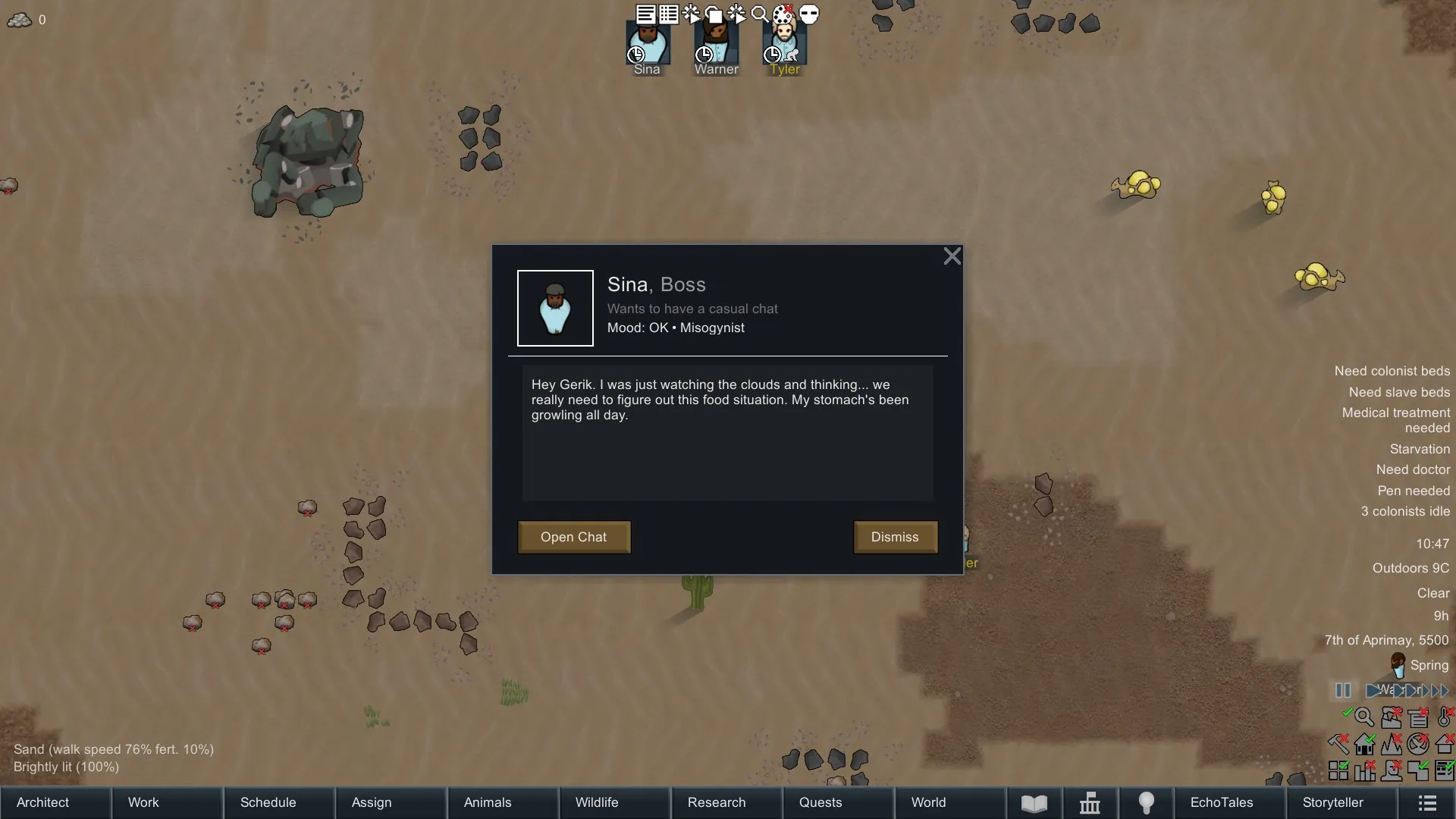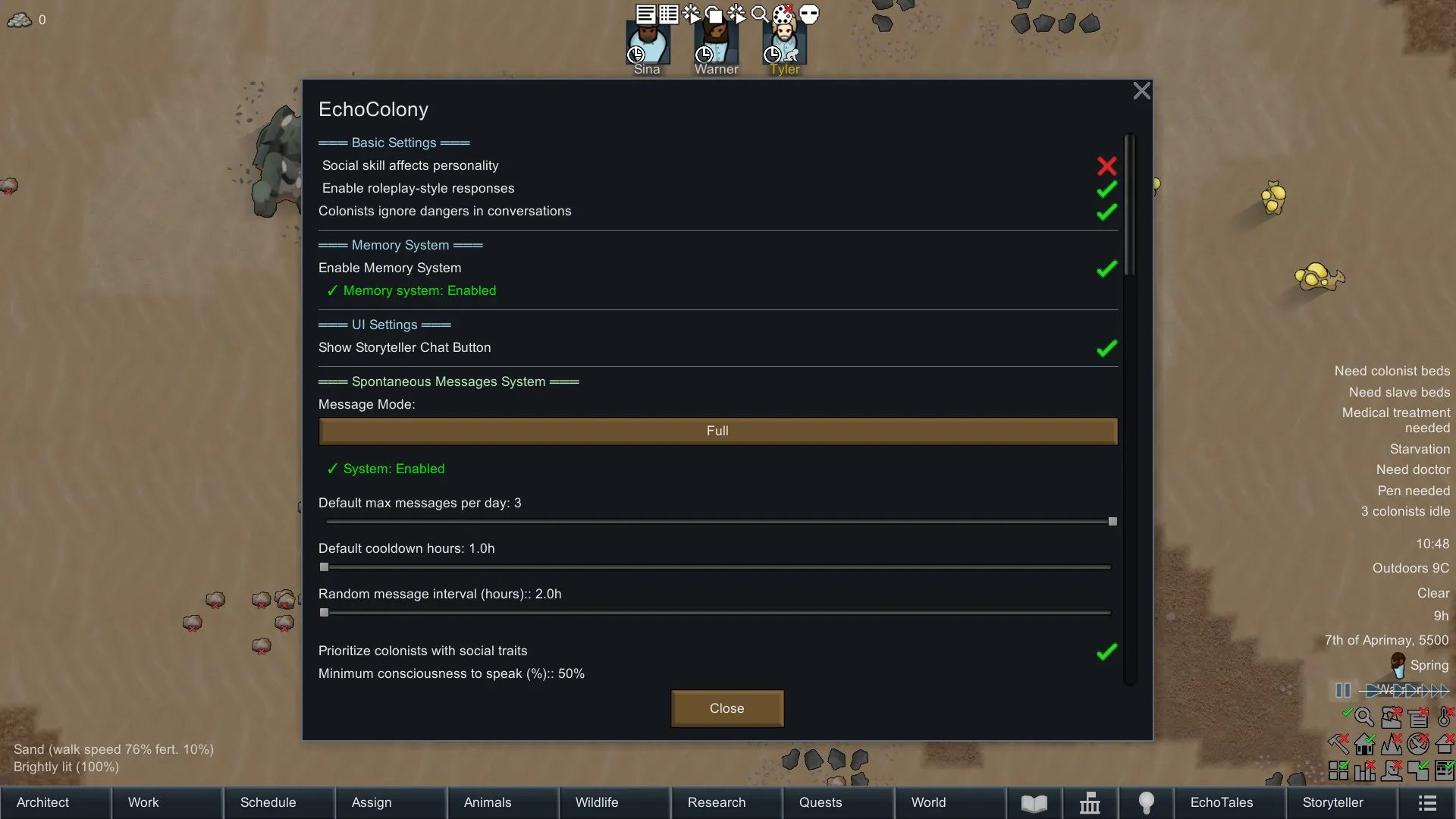 EchoColony connects dialogue with the actual in-game state of your pawns, making conversations part of the simulation itself, not just text on a screen.
