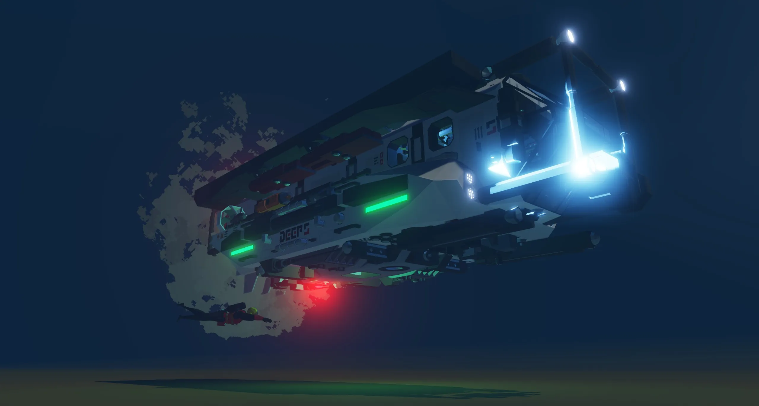 The [b][i]DEEP 5 Exploration Submarine[/i][/b] is the result of many months of work, it features several complex displays, and almost every type of stabilization. [b][i]The DEEP 5 Exploration Submarine[/i][/b] is also capable tons missions for example: Exploration, SAR, underwater repair, transportation, and even underwater mining*.