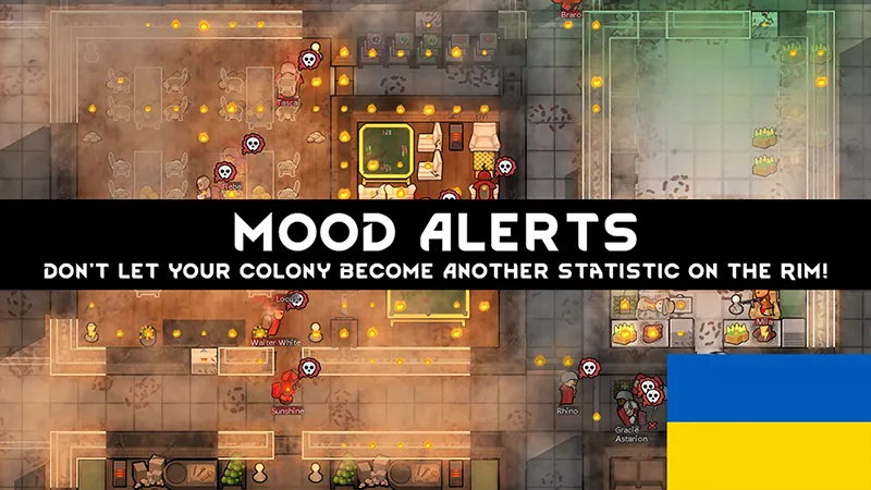 Забезпечте емоційне благополуччя своїх колоністів за допомогою Mood Alerts. Будьте в курсі загального настрою вашої колонії та швидко реагуйте на проблеми, перш ніж вони загостряться. Mood Alerts повідомить про дебафи, що впливають на колоністів.