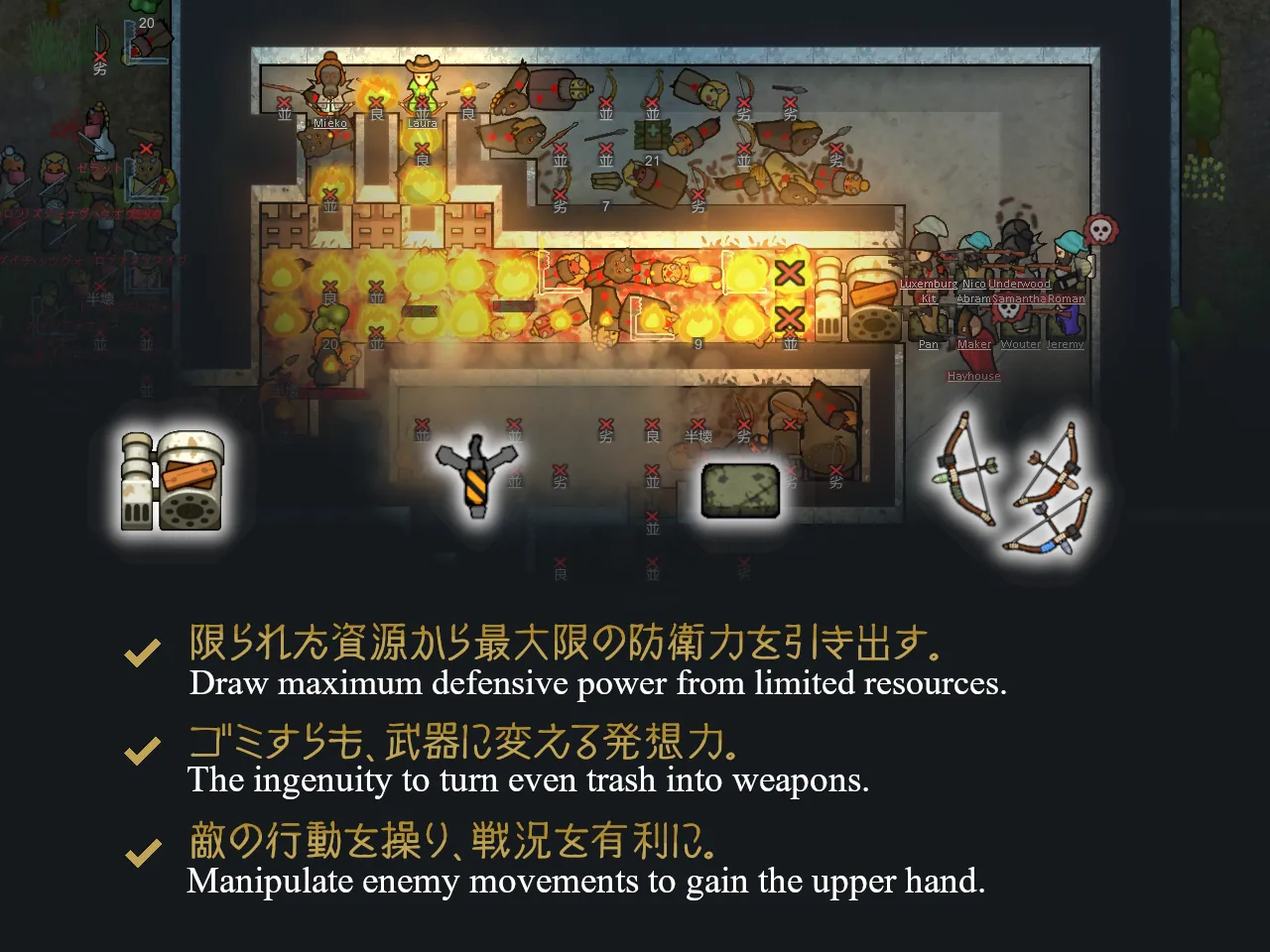 廃材や廃布を活かし、資産を抑えて襲撃規模を制御します。