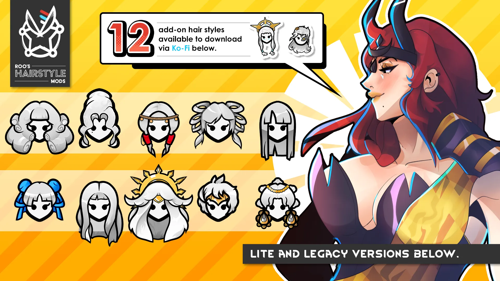 A. A lite version of this mod, where the hairs are fixed at 128x128, can be downloaded for free on my Ko-Fi page.
