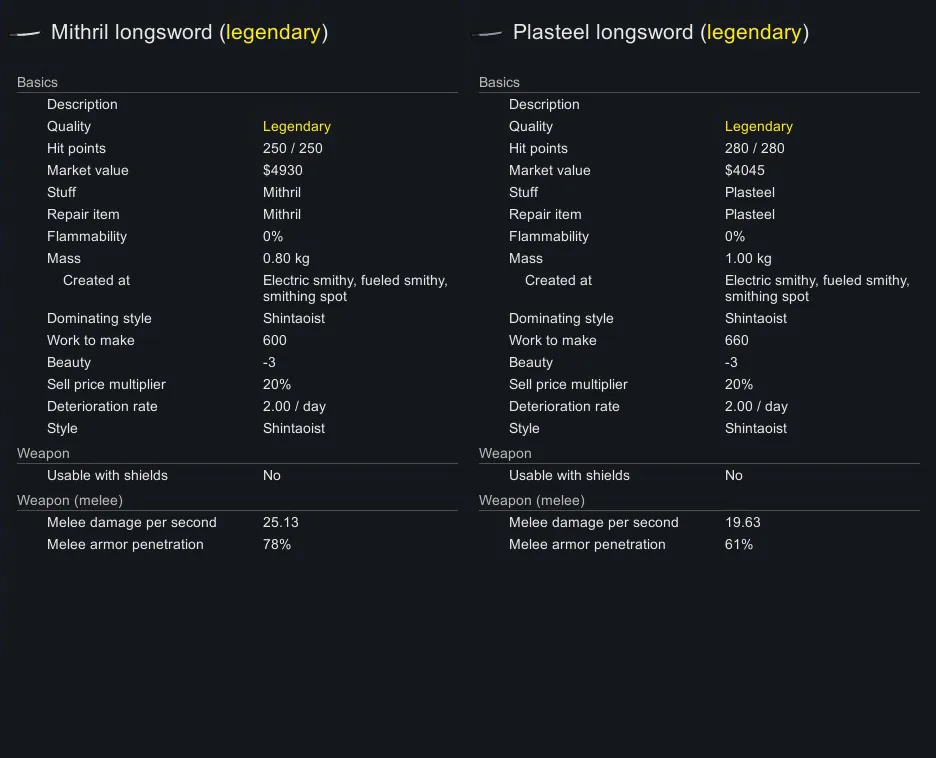 A fantasy alternative to plasteel. Armor forged from mithril is almost identical to the one forged from plasteel, but it’s best suited as a material for bladed weapons.