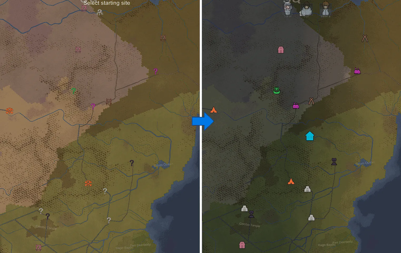 After clicking [b]Generate[/b], you will only see the random factions as '?' icons. You won't know who your neighbors will be until the game starts. As soon as your pawns spawn in the new world, you will be able to see the new factions in the world map.