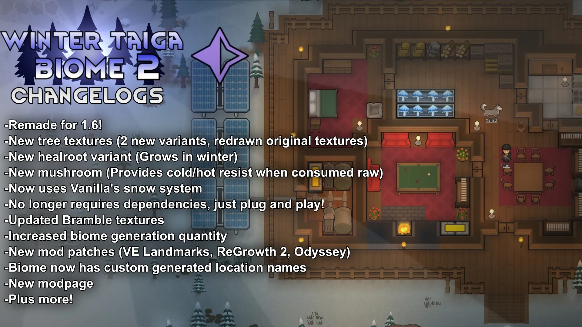 Welcome to the sequel to my first ever biome mod! This adds a unique vanilla-friendly Permanent Winter Forest biome with [b]unique Trees, Bushes, and other flora that changes appearance between Summer to Winter![/b] These trees and flora are only exclusive to this biome, and will not conflict with any other biomes, modded or otherwise.