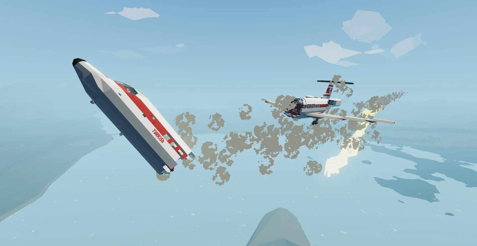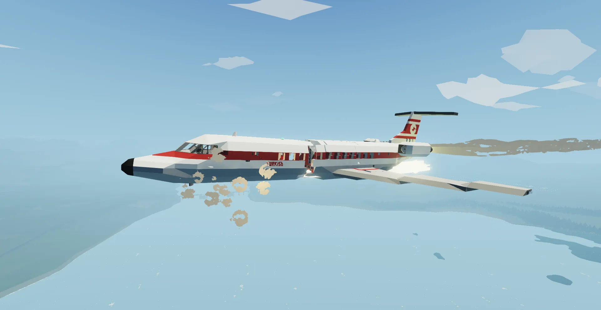 (Fictional Crash, Engine explosion caused a crack in the front of the plane to expand leading the nose to break off and the plane to crash)