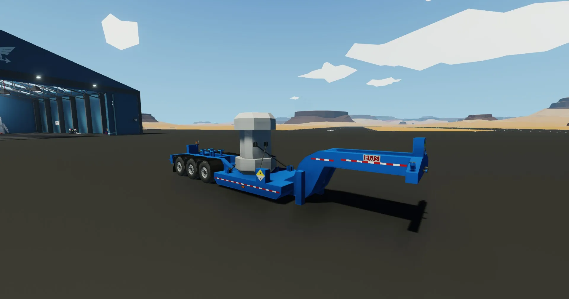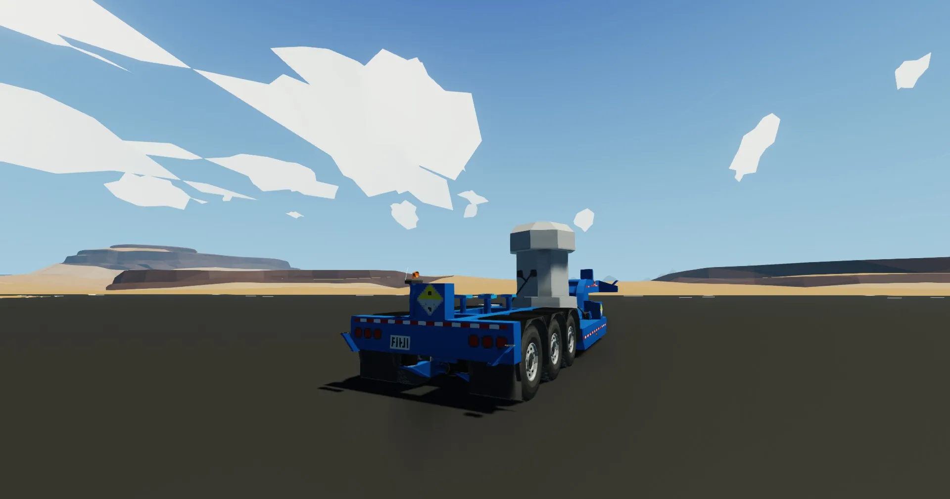 This is a replica of a BWS Manufacturing Nuclear Cask trailer. It has a fully modeled suspension system, functioning tie downs, and a modeled load.