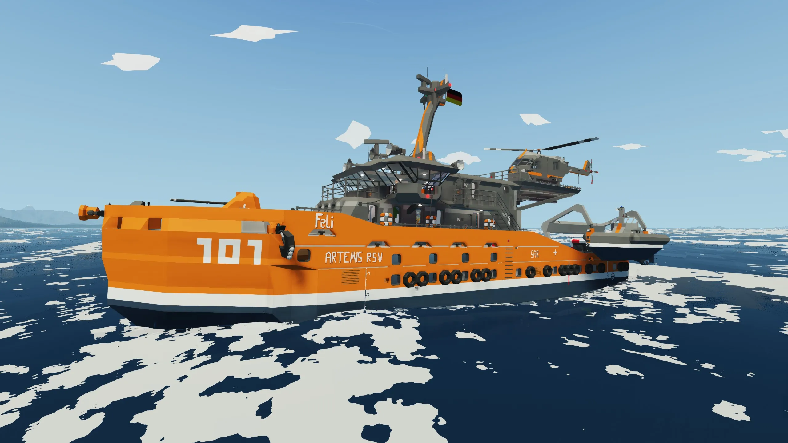 The RSV Artemis “Feli” is my first fully built rescue vessel: An ambitious project designed for reliability, versatility, and long-range emergency response. The ship is powered by a compact nuclear reactor feeding a steam boiler, driving eight steam turbines for smooth and consistent propulsion. This setup ensures long endurance and excellent power output while keeping fuel requirements minimal.