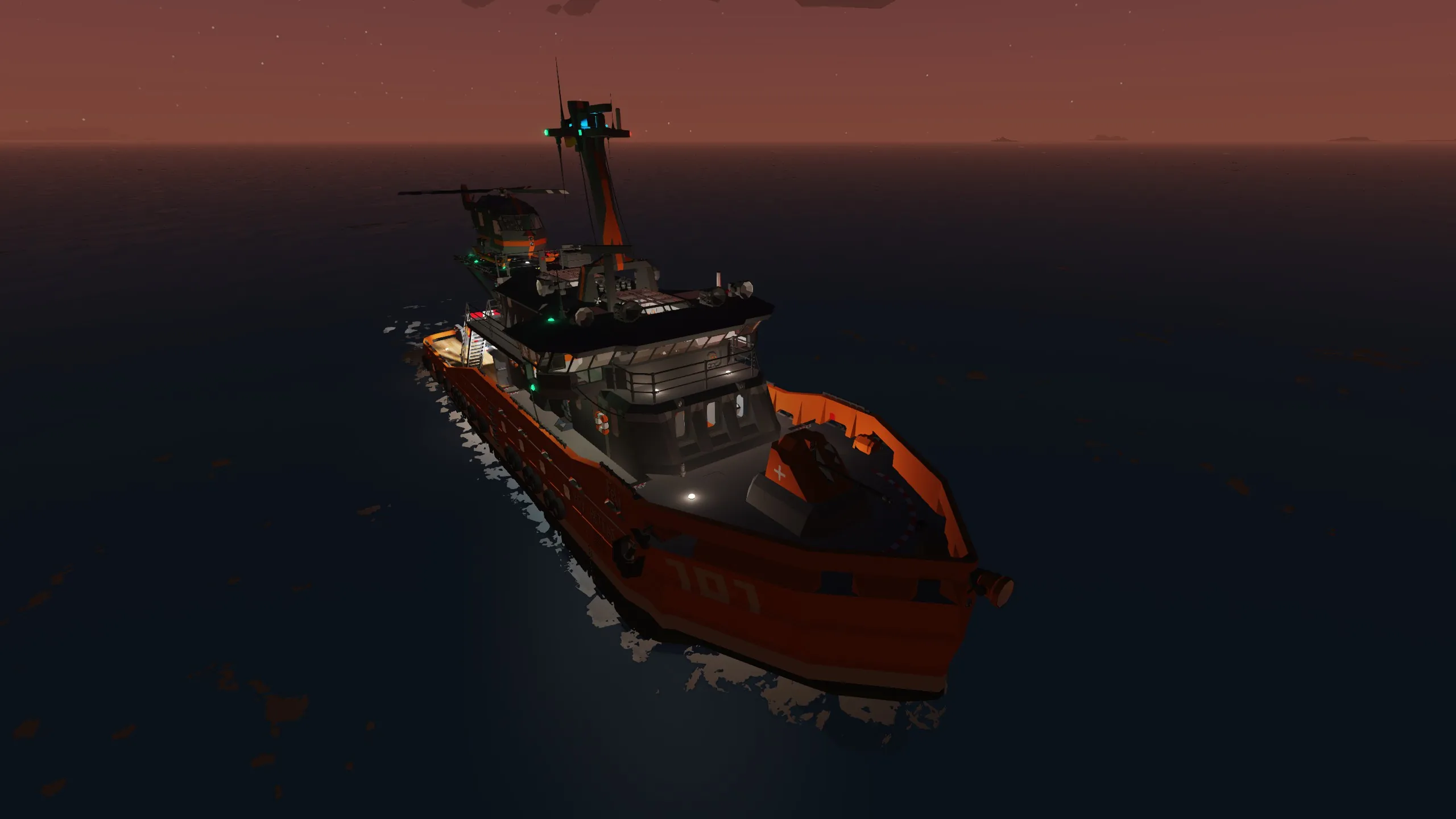 Spread throughout the vessel is an extensive set of equipment built for various rescue scenarios. At the bow, a high-pressure water cannon provides strong firefighting capabilities. Integrated sonar provides excellent underwater awareness, while a powerful radar covers the sky! On the port aft section, a small RHIB is ready to deploy within seconds for fast-response surface operations, capable of reaching 50 knots. On the top deck sits a light rescue helicopter, perfect for long-distance or hard-to-reach situations, boasting a maximum speed of 85 knots.