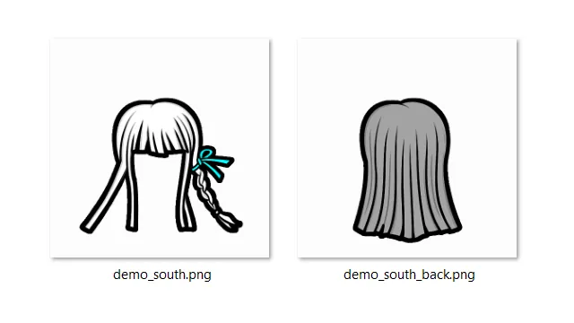[b]West or east back textures will NOT be automatically flipped if only one is provided.[/b] This is intentional, to allow modders to make asymmetrical hairs if they wish. To have a back texture be used for both east and west sides, just make a copy of it and rename the copy accordingly i.e "name_east_back.png" and "name_west_back.png".