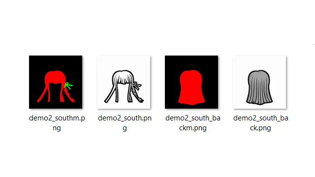 [b]West or east masks will NOT be automatically flipped if only one is provided.[/b] This is intentional, to allow modders to make asymmetrical hairs if they wish. To have a mask be used for both east and west sides, just make a copy of it and rename the copy accordingly i.e "name_eastm.png" and "name_westm.png".